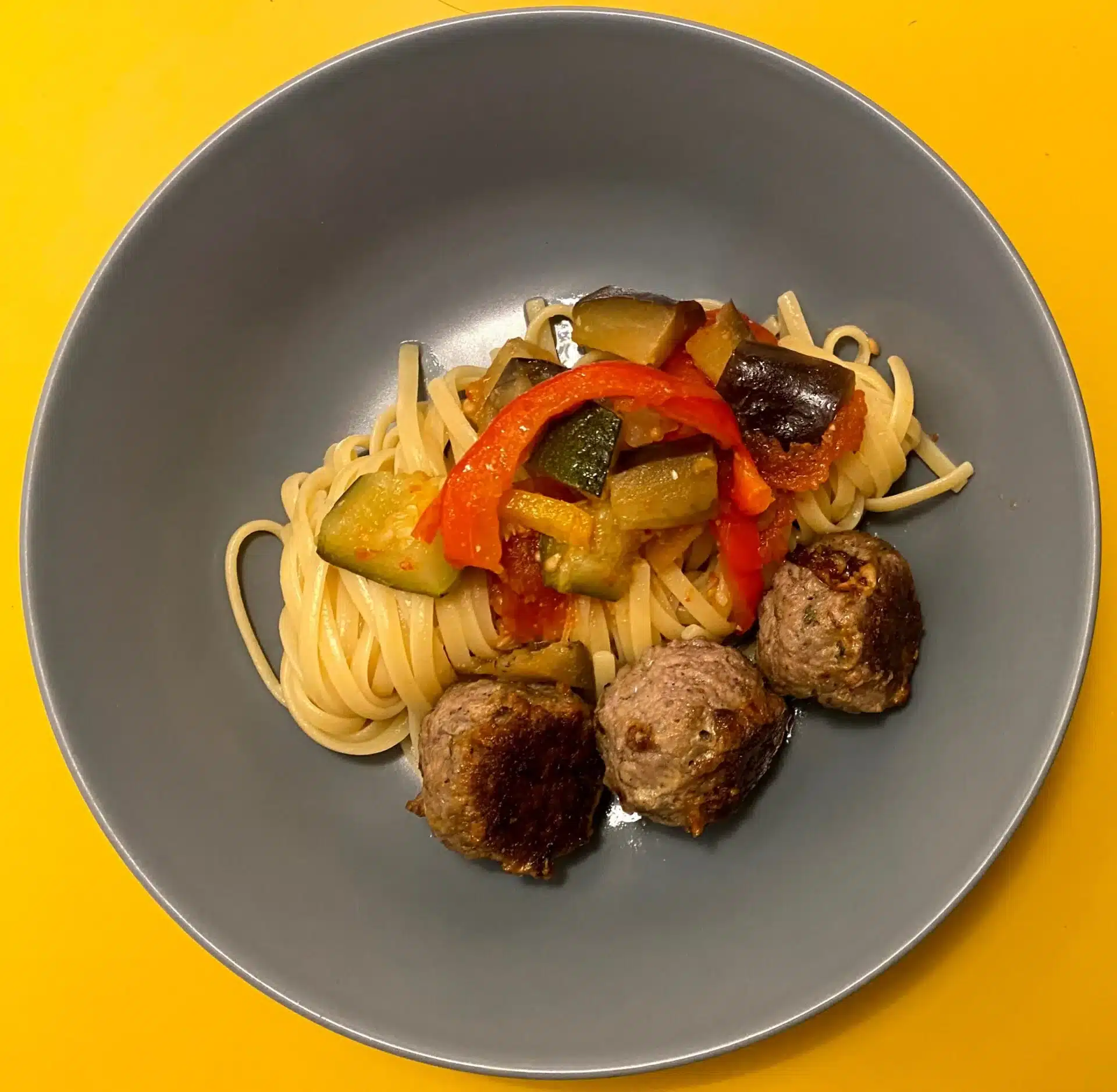 Ces boulettes s'accompagnent vraiment avec tout, que ça soit des pates, un couscous ou même du riz et des légumes.