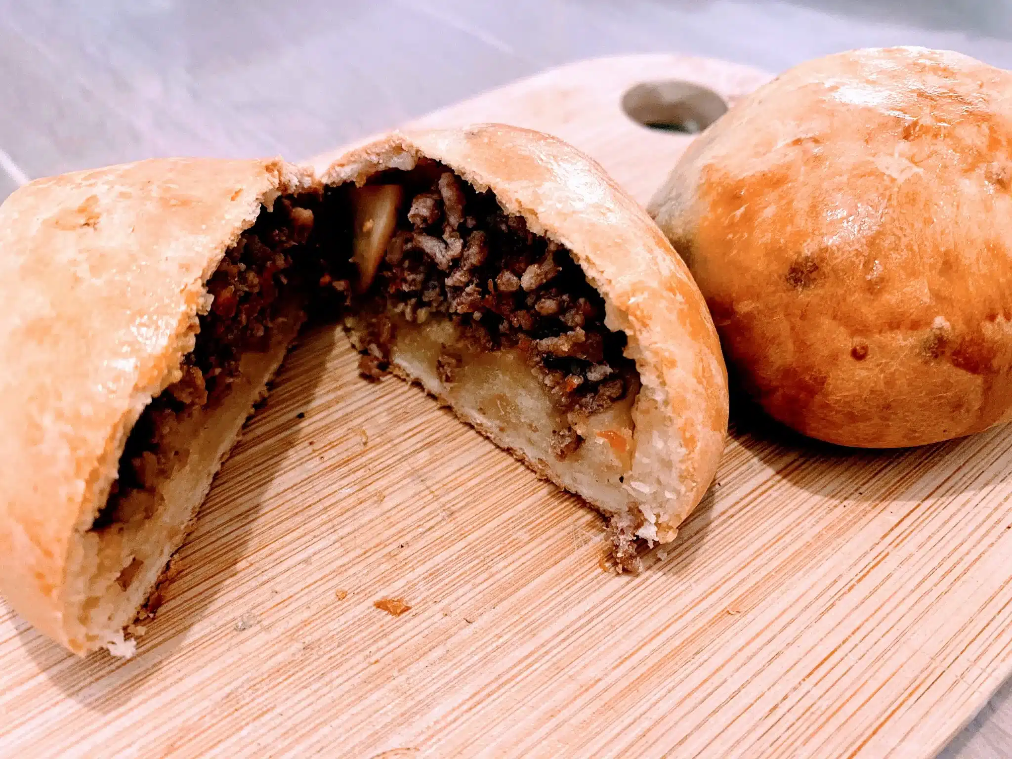 Des petits pains légers et croquants fourrés à la viande hachée assaisonnée et juteuse.