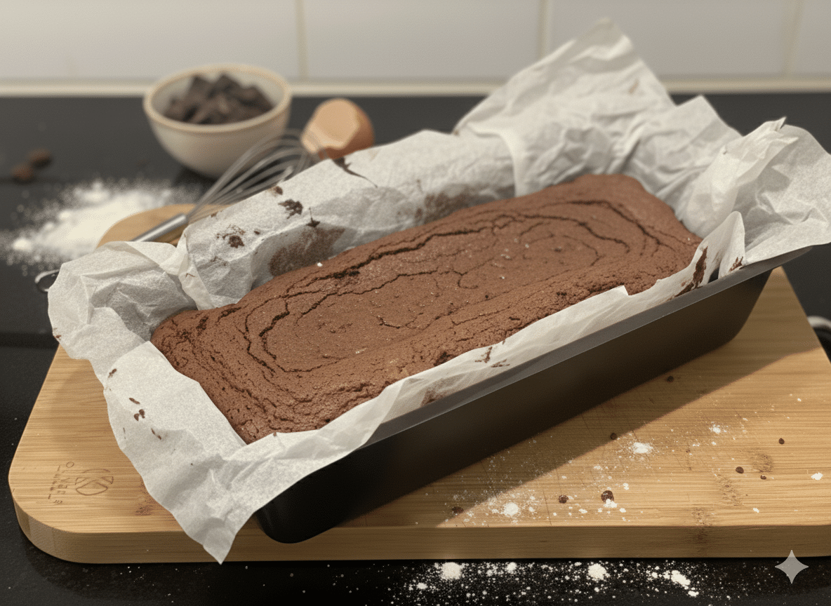 - Chemisez votre moule à cake avec du papier sulfurisé et versez votre préparation